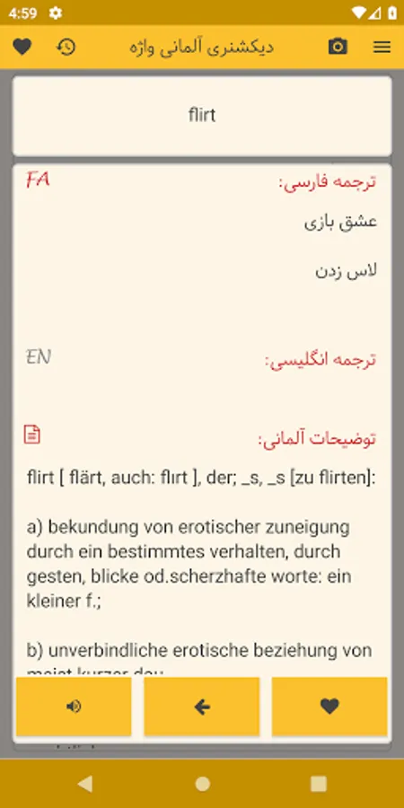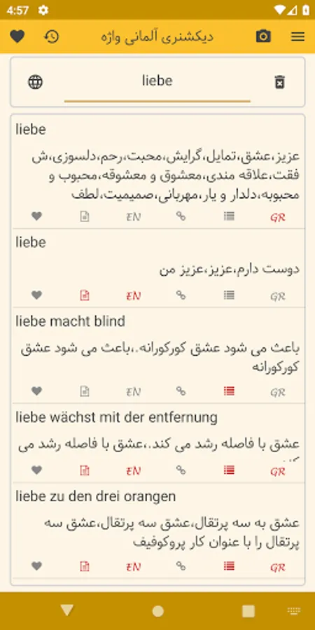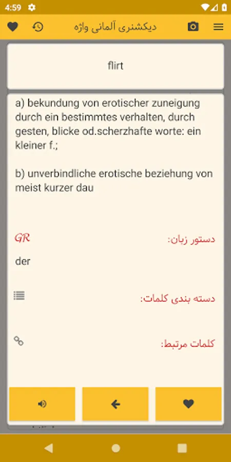 In the German-Persian dictionary section, more than 50,000 words with German grammar are provided, which if you have grammatical explanations, you can see it in the program.