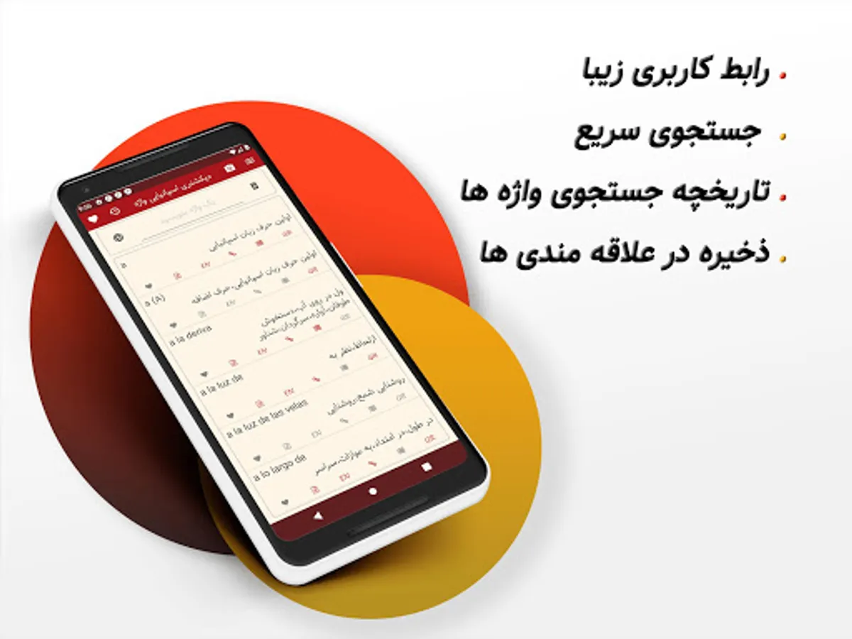 The word dictionary is completely smart and recognizes the pronunciation and language of the word without the need to change the device settings. All you have to do is search for a word in Persian or Latin letters to see your search result in the shortest possible time. .