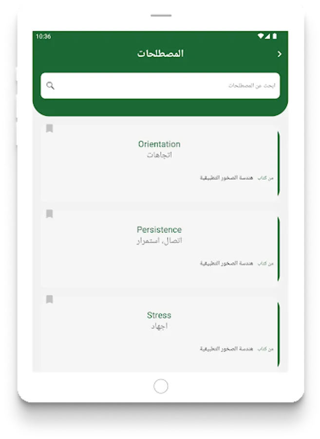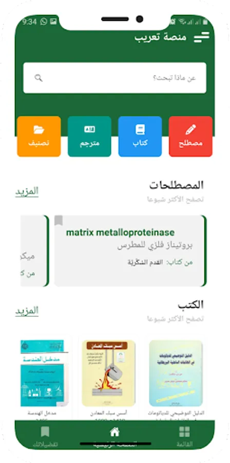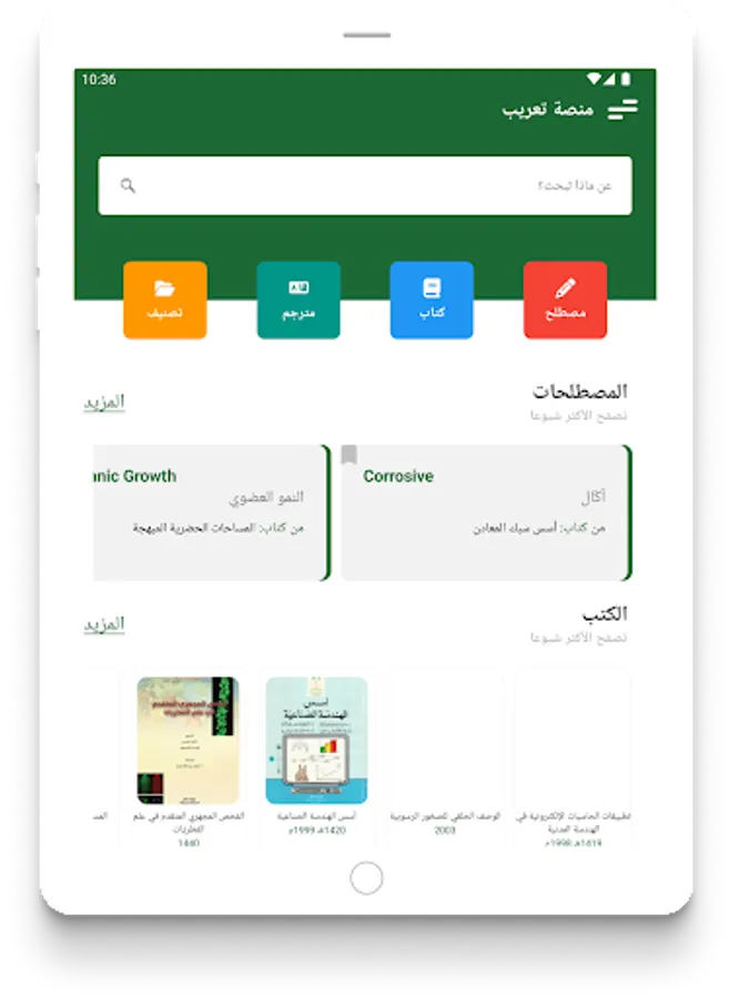 Ta3reeb application is an interactive interface for the Arabized scientific terminology platform. It is a result of the accumulated efforts of translators at King Abdulaziz University, and a summary of their work in the field of translation and Arabization of scientific terms in the books printed at the university. In an interactive way that enables users to search for any term in Arabic or English, and the user can also track the source in which the term to be searched was Arabized. The platform also includes a definition of all the books that the platform relied on in preparing its terminology.