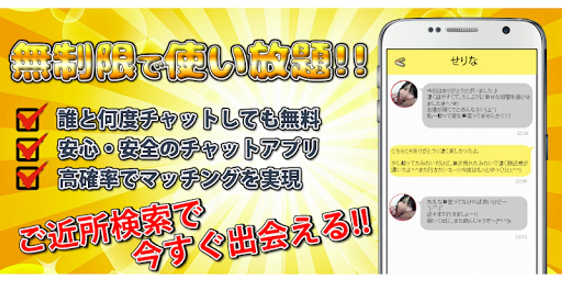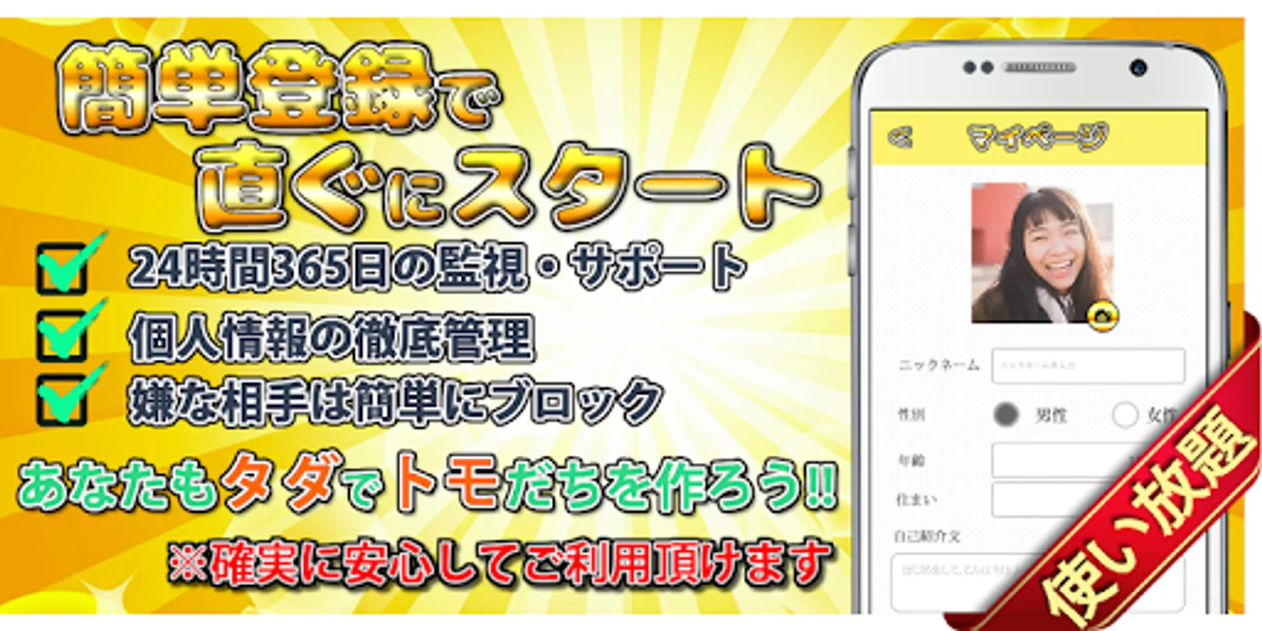 出 会 い た い 人 だ け を 集 め た マ ッ チ ン グ ア プ リ だ か ら 高 確 率 で 出 会 え ま す し, 個人 情報 は 不要 で 簡 単 登録. 直 ぐ に チ ャ ッ ト を ス タ ー ト 出来 ま す.