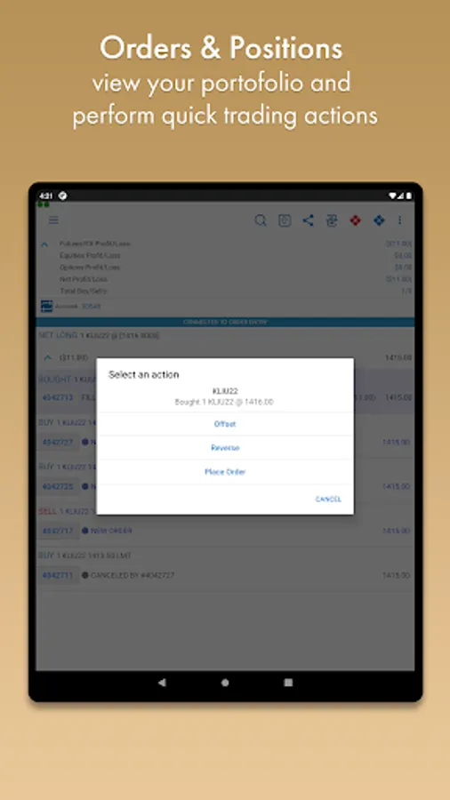 This application offers you the perfect balance between trading with one tap and, at the same time, offers in-depth customizations for your trading actions. Visualizing your portfolio has never been easier with Orders & Positions. Applying filters and using simple gestures can show or hide details on any item in your portfolio.
