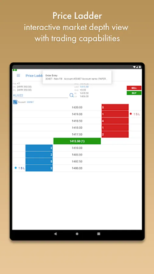 Price Ladder offers a real-time market depth view that highlights your relevant portfolio data in an interactive fashion.