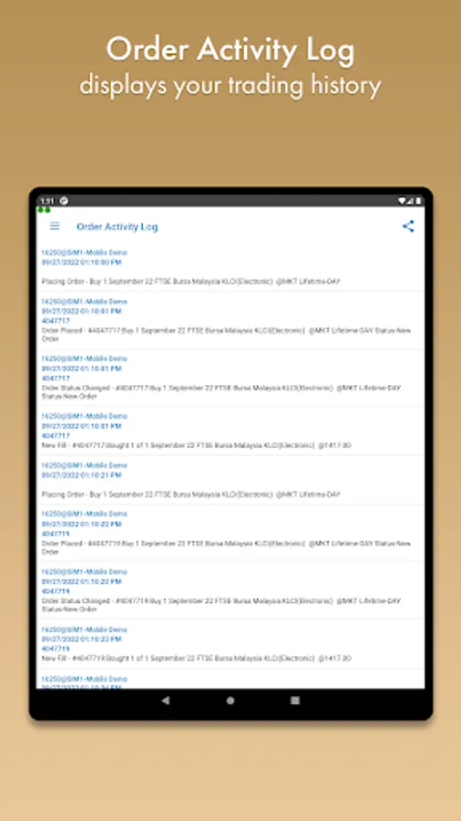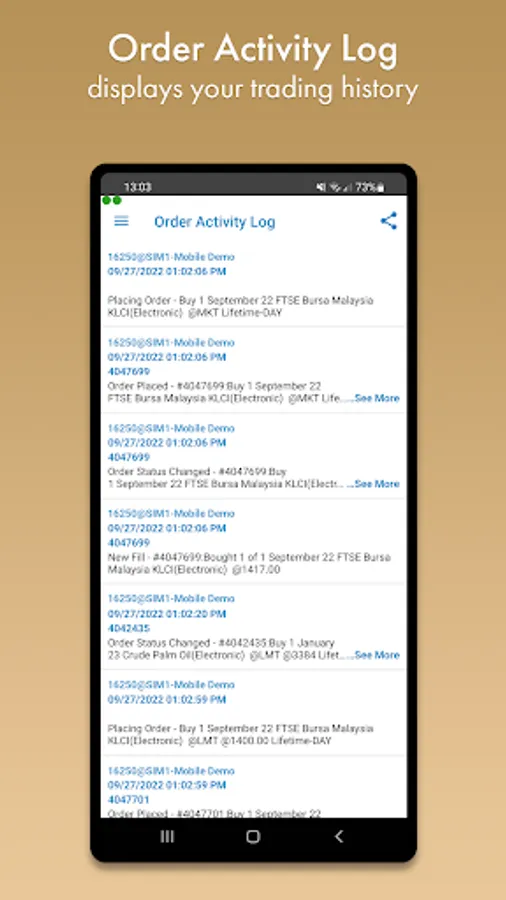 Real-time notifications provide instant feedback during your trading session. Should you need to review your trading history, changes to your orders and positions, the Order Activity Log is the perfect tool for that.