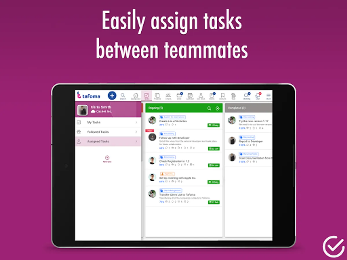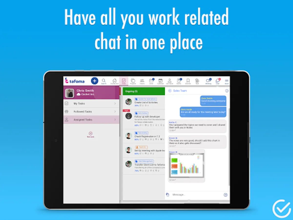 Tafoma makes it affordable, easy, and safe to organize your teamβs collaboration all in one app. You can connect with your team more effectively on any device, anywhere and get work done faster. Helps with tasks organization even for remote working.