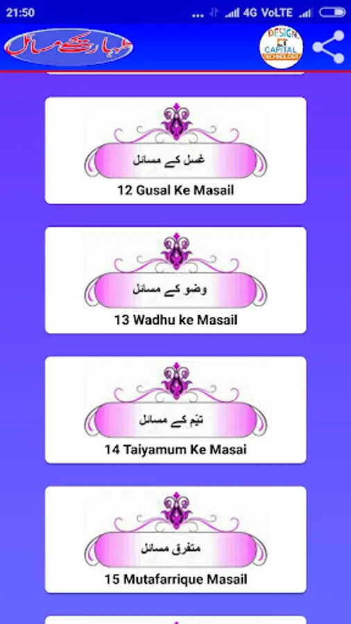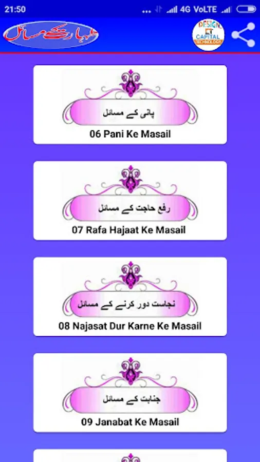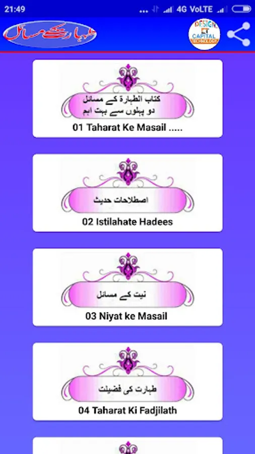 Es mobile App mein Taharat ke masail ko islami andaz me bayan kiya gaya he