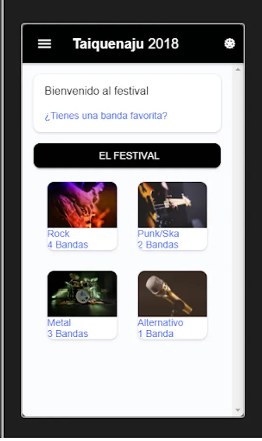 Taiquenaju app is a project which allows to know about music and peace festival that takes place in Caicedonia Valle, in their aniversarias parties.