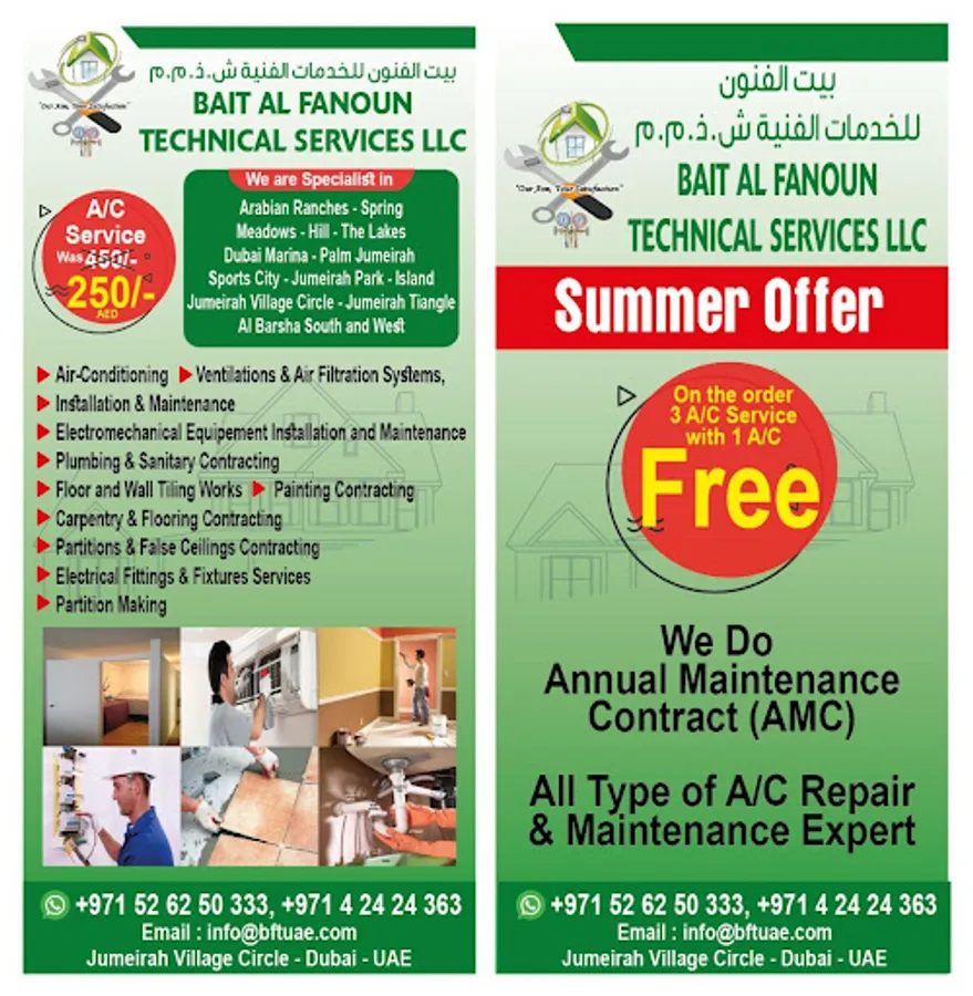 Bait Al Fanoun Technical Services, n a leading professional full General Maintenance and cleaning services Company in Dubai-UAE, We are committed to providing modern, professional, environmentally- friendly and efficient service to residential, commercial, industrial and domestic clients. We offer a wide variety of services: Our core competence lies in providing specialized General Maintenance services. Our services include: Painting, A/C maintenance, Flooring and tiling, Pest control, general cleaning, porter and other maintenance services.