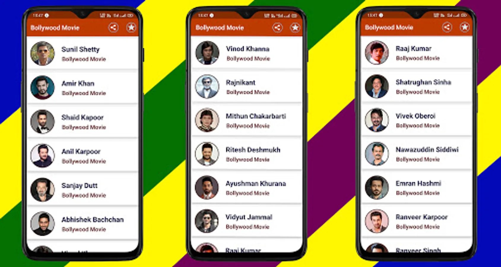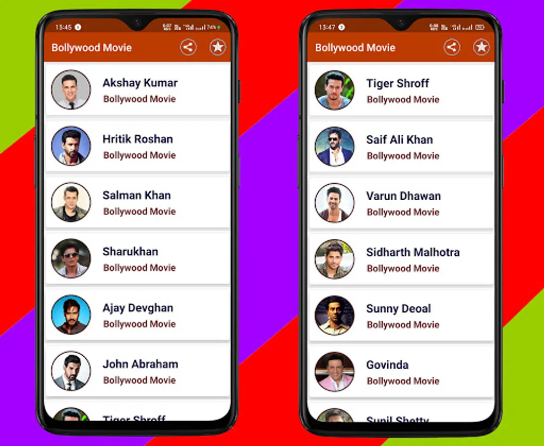Hindi Movie application contais movie of Amitab Bacchan, movie of Salman Khan, movie of Sahrukh Khan, movie of Aamir Khan, movie of Akshay Kumar, movie of Sanjay Dutt, movie of Ajay Devgan, movie of Naseeruddin Shah, movie of Anil Kapoor, movie of Nana Patekar, movie of Sunny Deol, movie of boby deol, movie of Mithun Chakrawarty, movie of Rishi Kapoor, movie of Ranbir Kapoor, movie of Saif Ali Khan, movie of Hritik Roshan, movie of Govinda, movie of Tigar Shroff, movie of Jackie Shroff, movie of Sunil Shetty, movie of Emran Hashmi, movie of Irrfan Khan, movie of Nawazuddin Sidduqui, movie of Arshad Warsi, movie of Abhay Deol, movie of Farhan Akhtar, movie of Surhant Singh Rajput, movie of Arjun Rampal, movie of Randeep Hooda, movie of Abhishek Bacchan, movie of Arjun Kapoor, movie of Imran Khan, movie of John Ibrahim, movie of Manoj Bajpayee, movie of Sihid Kapoor and also many more.