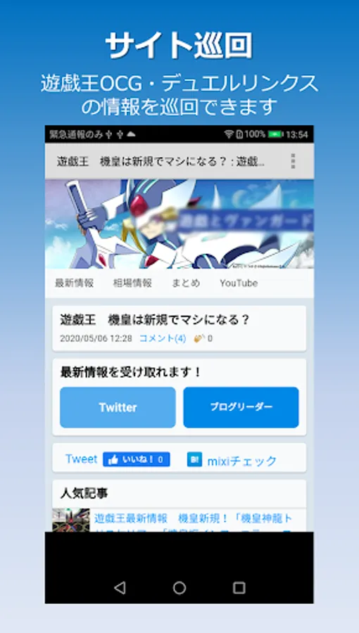 各種ブログから、遊戯王OCG・デュエルリンクスの情報を取得できます。