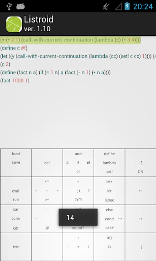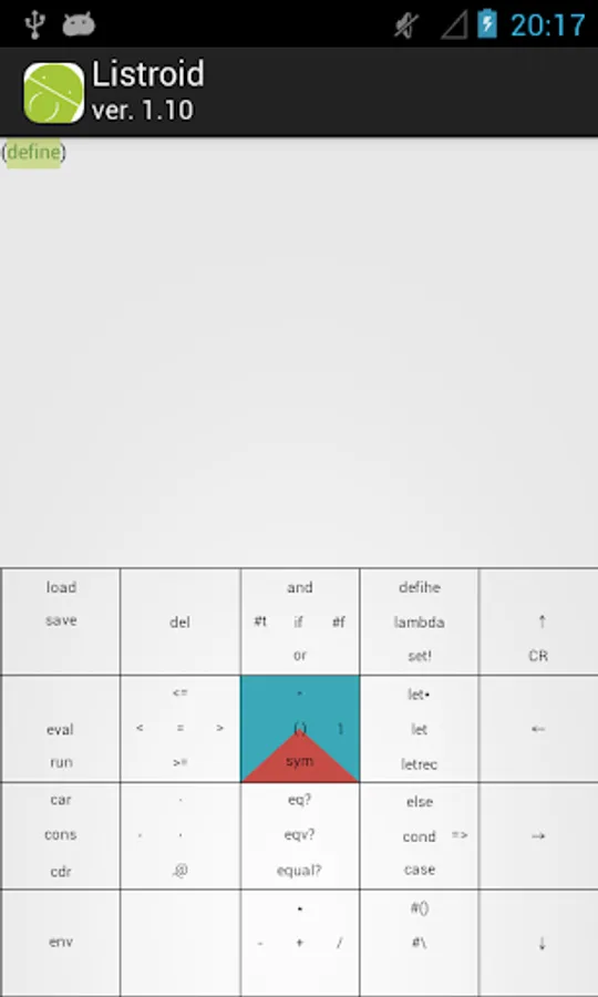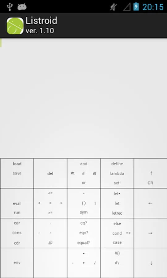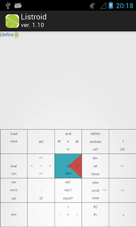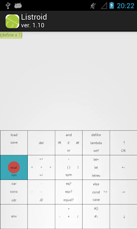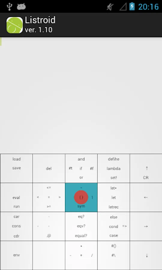 Listroid we have developed aiming the execution environment of the Scheme (R5RS) in which you can enter the comfortably expression even with one hand.
