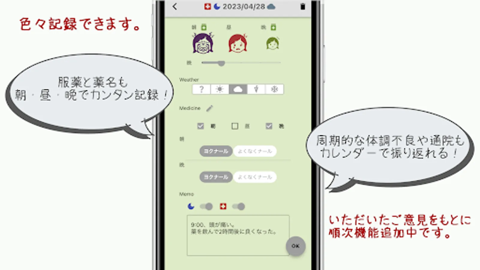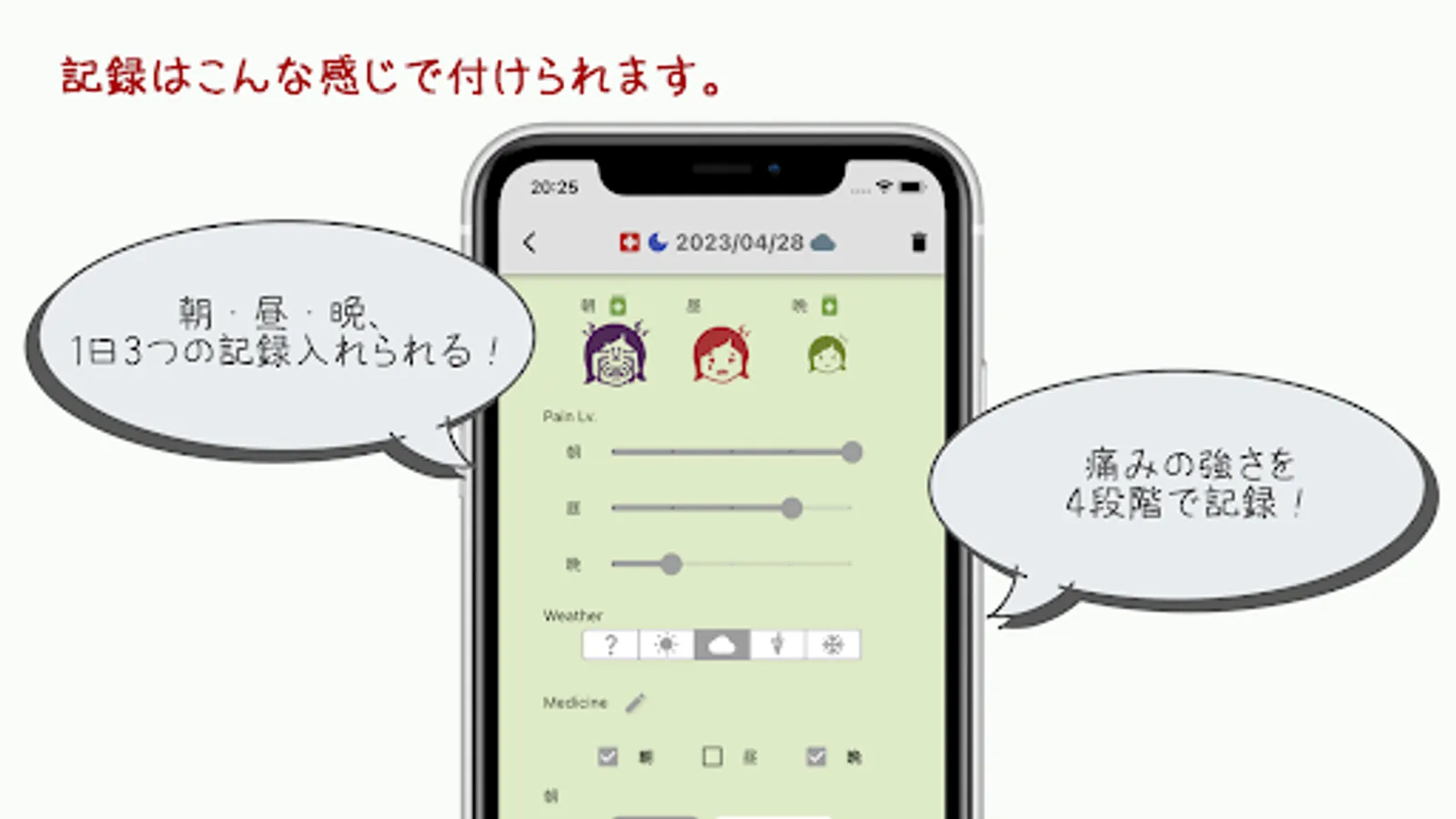 Record morning, day and night headaches in 4 stages 3 times a day and check the list on the calendar!