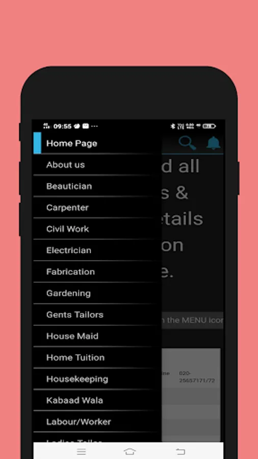 There are more than 25 Home Service Categories in this Version of Talegaon Dabhade Directory App. In current version of the App, there are Home Services like Beautician, carpenter, civil work, electrician, fabrication, gardening, gents tailors, house maid, home tuition, housekeeping, kapad wala, labours/ workers, ladies tailors, laundry service, printer, personal trainer, pest control, photographer, wedding planner, plumber, Pandit/Brahman, ro service, tours and travel /cab service /transport, mechanic - two wheeler four wheeler, solar system, printing service and more services.