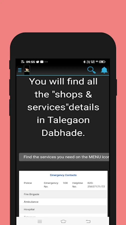 "Talegaon Dabhade Directory" is an online Platform for Home Service Providers and Home Service Consumers. It is a Company which offers its services through its Mobile App. All the Services available on this platform are Home Services." Talegaon Dabhade Directory" aims to provide services at doorstep to Service Consumers by Service Providers and also aims to provide employment information to Service Providers on their Phone/Mobile. It is an online platform which helps to bring closer the Service Providers and Service Consumers of nearby locations. The users of this App who are registered as Service Provider on this App will provide Home Services at doorsteps.