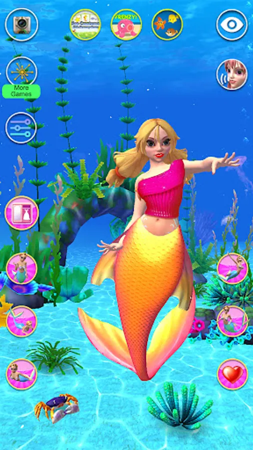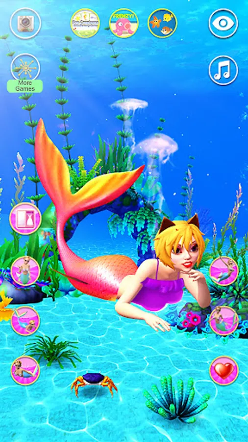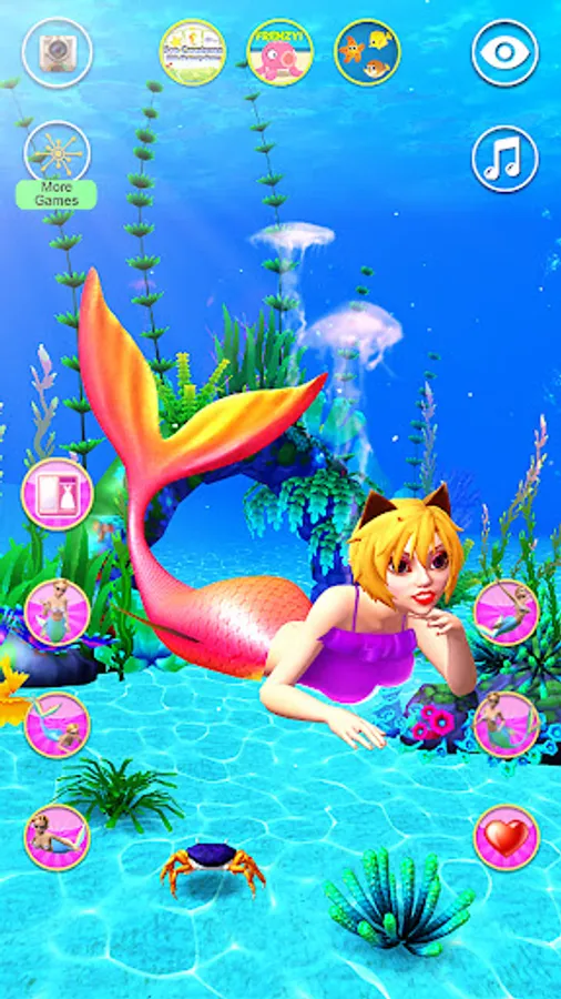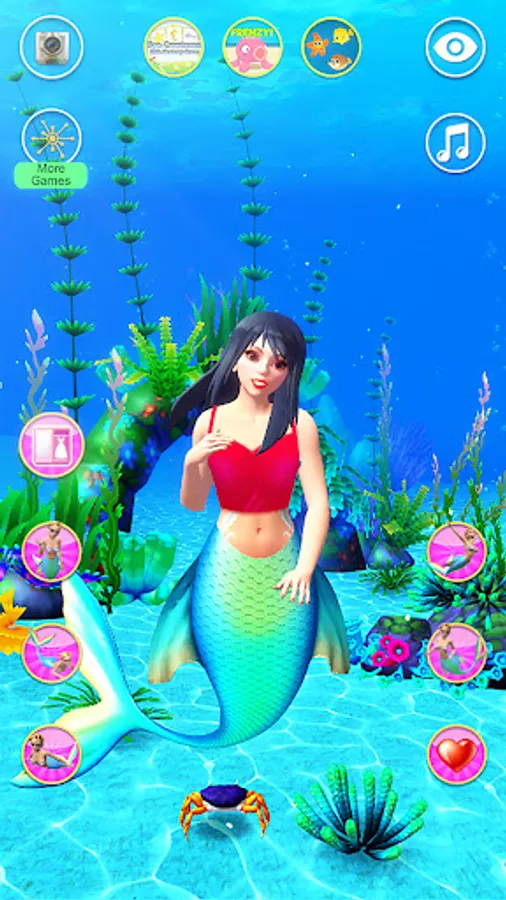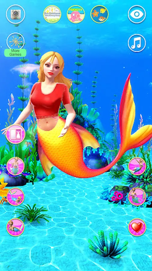 Enjoy hours of fun and laughter with Talking Mermaid. Dive into the underwater world of the beautiful mermaid princess. Talk to the beautiful talking mermaid. The Mermaid will answers with her cute voice and react to what you say or your touch.