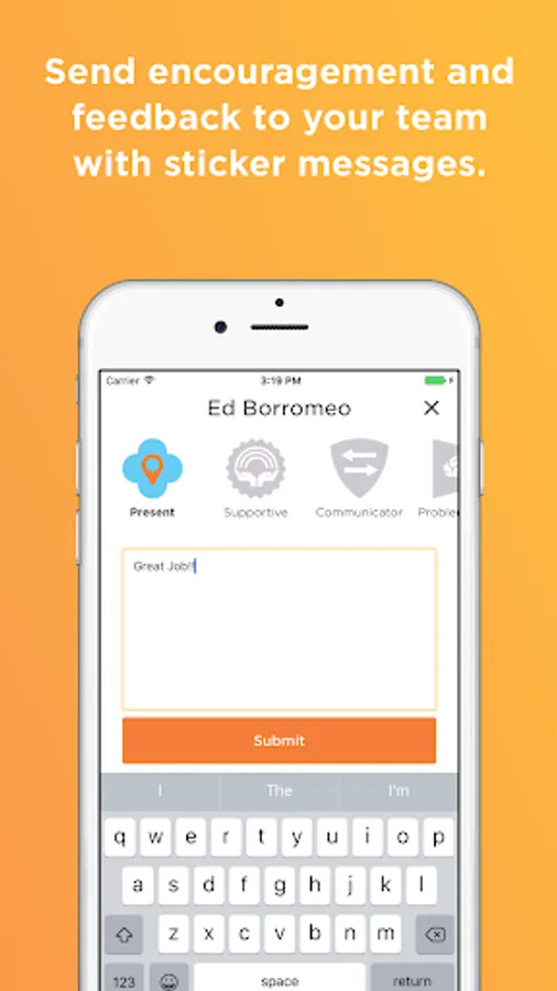 • Recognize mindful behavior of colleagues by giving and receiving stickers delivered with a personalized message.
