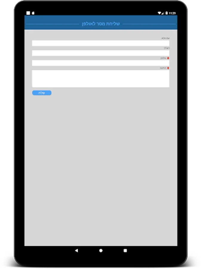נא ידע אותנו על הטעון שיפור באמצעות שליחת הודעה מתוך האפליק' עצמה, או באמצעות מייל ל: app@breslav.co.il