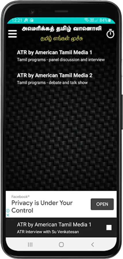 American Tamil Radio (ATR) brings Tamil music and entertainment programs including discussion forums, debates and on socioeconomic and sociopolitical issues. ATR also broadcasts some rare collection of Tamil songs.