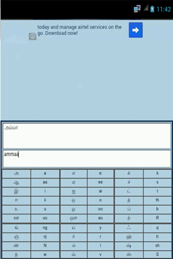 This android app helps you to write tamil words easy and fast. if you write "thamiz" and that will change it into "தமிழ்". Simply Type english in keyboard. it is useful Tamil Unicode converter.