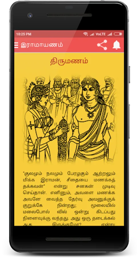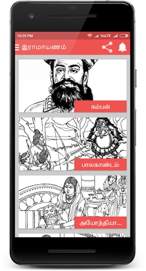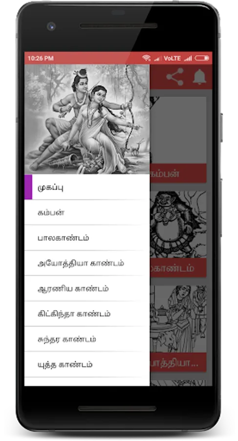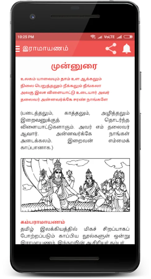 Ramavataram, popularly referred to as Kamba Ramayanam, is a Tamil epic that was written by the Tamil poet Kambar during the 12th century. Based on Valmiki's Ramayana (which is in Sanskrit), the story describes the life of King Rama of Ayodhya. However, Ramavatharam is different from the Sanskrit original in many aspects - both in spiritual concepts and in the specifics of the storyline. This historic work is considered by both Tamil scholars and the general public as one of the greatest literary works in Tamil literature.