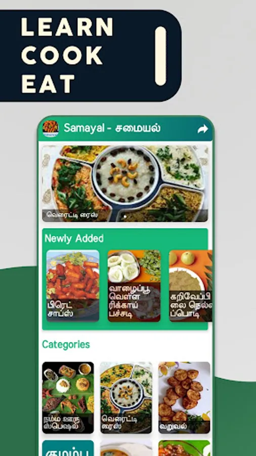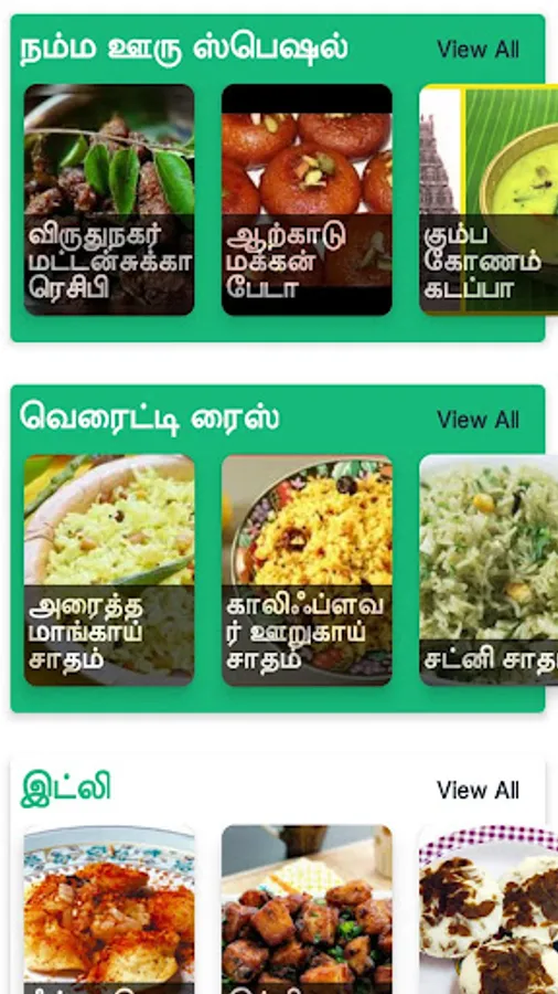 Recipes for South Indian, North Indian and continental vegetarian and non-vegetarian dishes in the Tamil language. More than a thousand recipes.