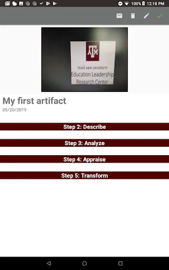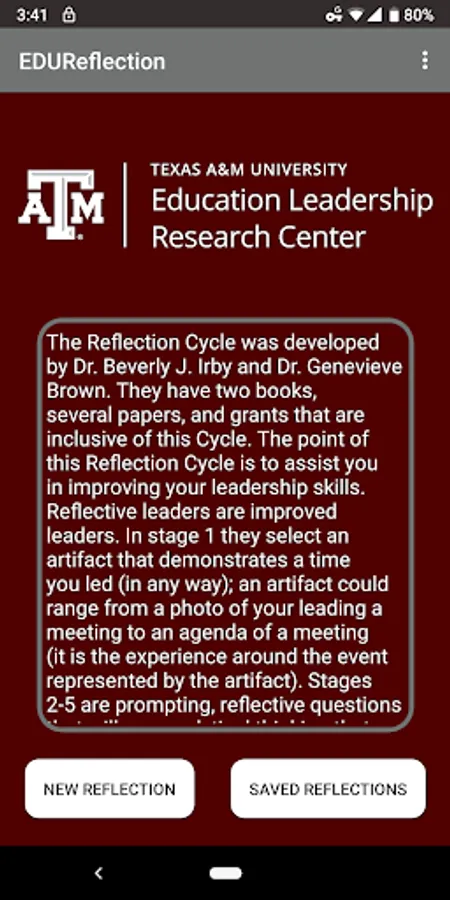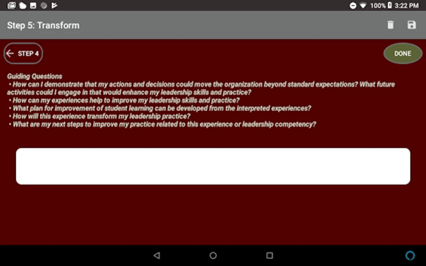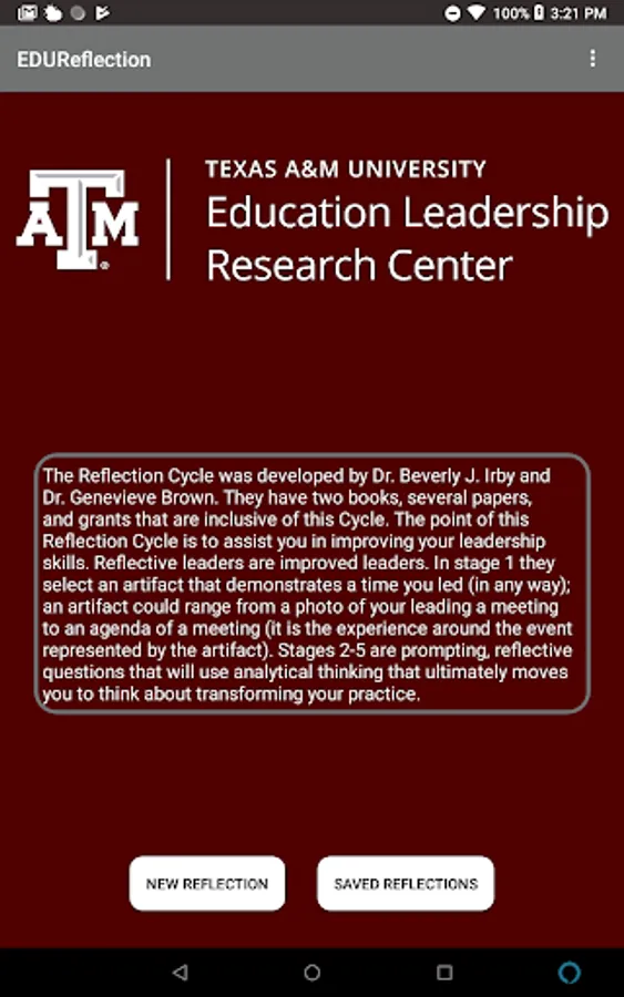 The Reflection Cycle was developed by Dr. Beverly J. Irby and Dr. Genevieve Brown. They have two books, several papers, and grants that are inclusive of this Cycle. The point of this Reflection Cycle is to assist you in improving your leadership skills. Reflective leaders are improved leaders. In stage 1 they select an artifact that demonstrates a time you led (in any way); an artifact could range from a photo of your leading a meeting to an agenda of a meeting (it is the experience around the event represented by the artifact). Stages 2-5 are prompting, reflective questions that will use analytical thinking that ultimately moves you to think about transforming your practice.