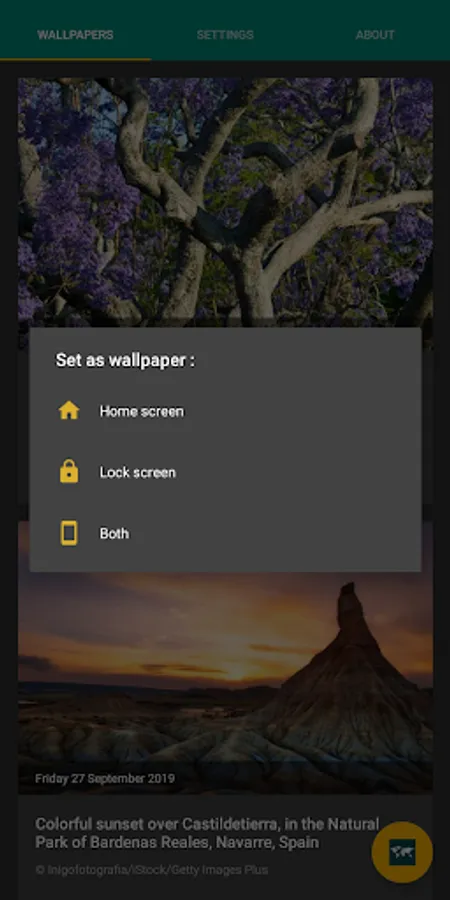 - Set as wallpaper from the app or automatically.