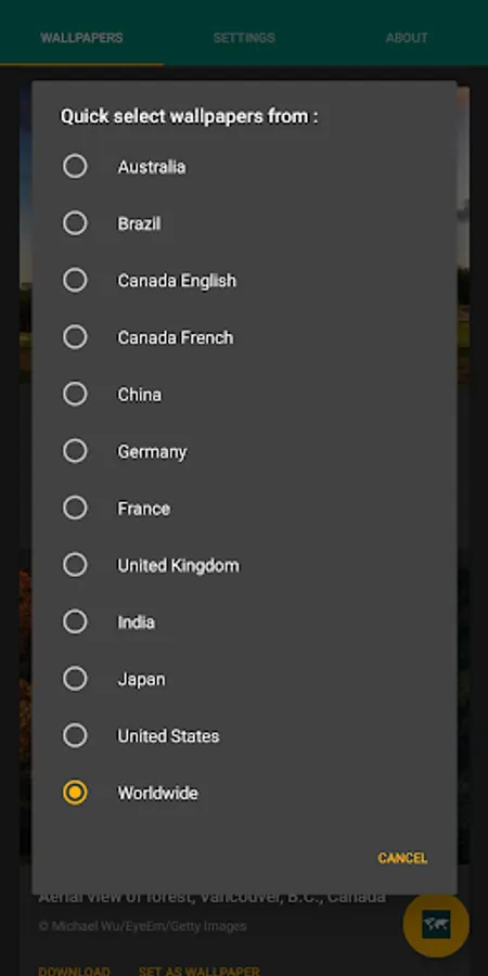 - See wallpapers of all countries supported by Bing.