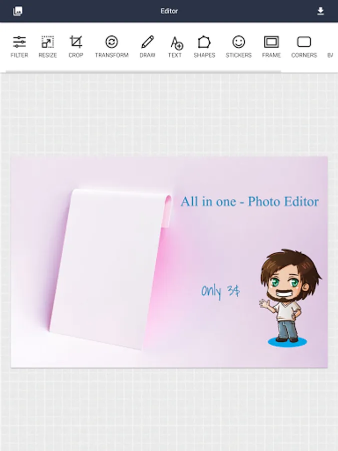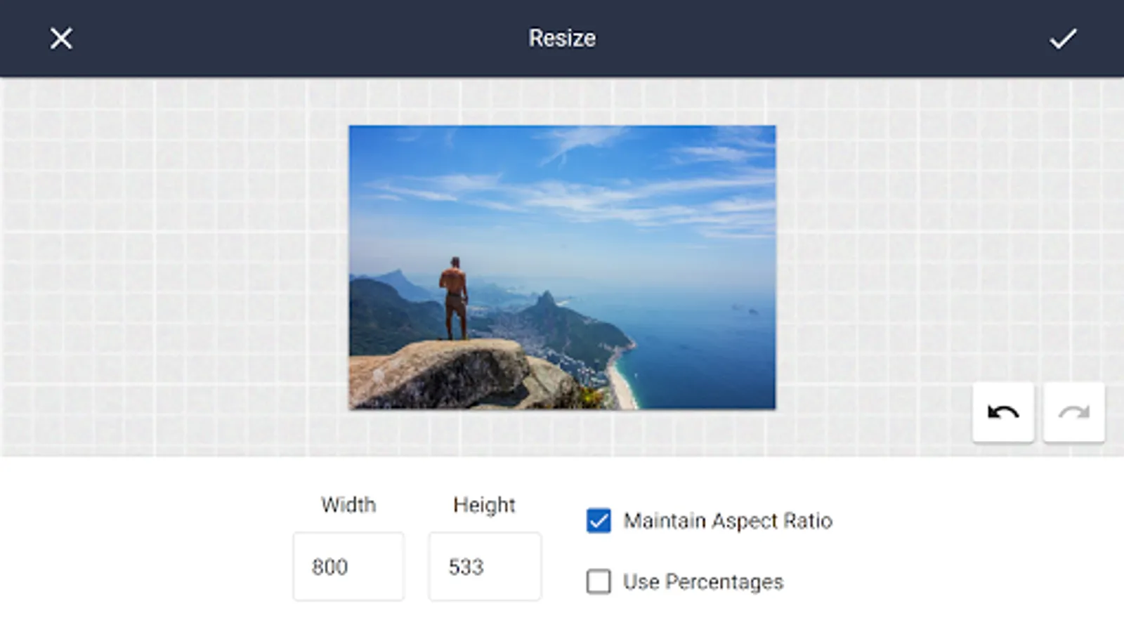 You can edit image, resize, add text, icon, effect image as fade, hide. You can make a image by empty image, trim image, clean object selected .... you can do anything.