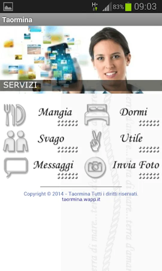 - Section 6 SERVICES with sub sections dedicated to the catering, hospitality, leisure, messages;