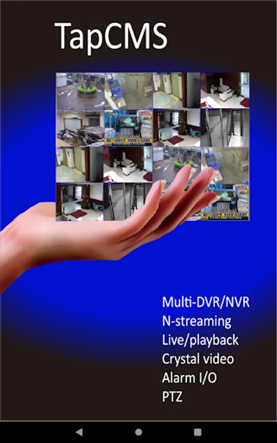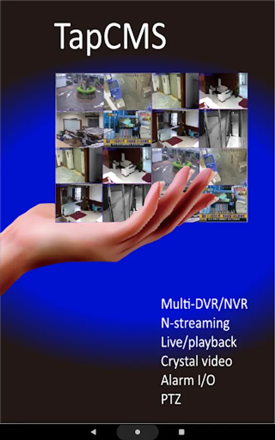 The TapCMS for Android is designed for use with DVRs. With state-of-the-art technology, virtually unlimited number of DVRs can be monitored and controlled.