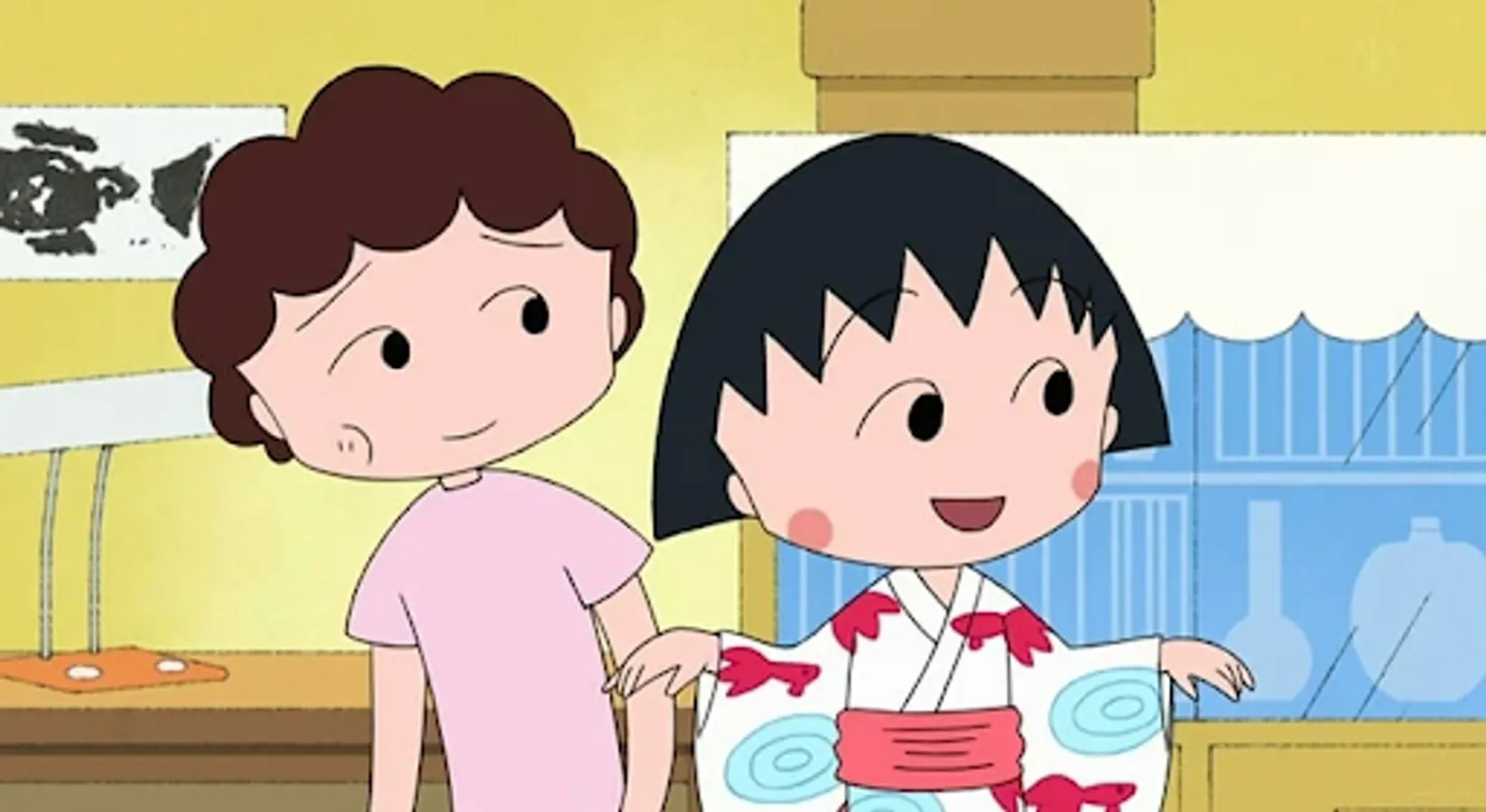 Pictures of the simple daily life of the little girl, Maruko, with her family and friends