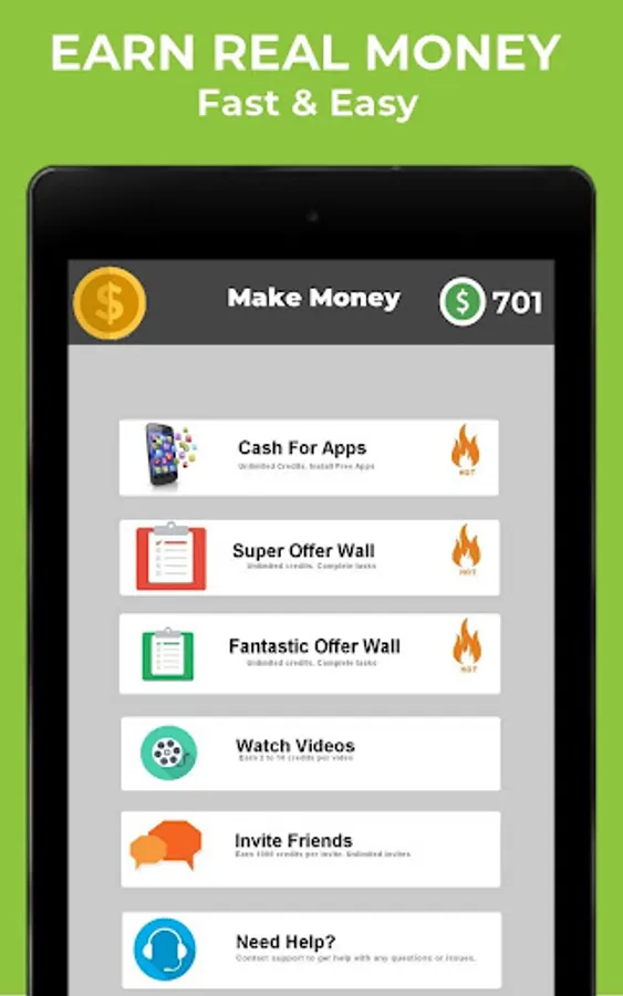 Earn real money by completing simple tasks inside the app. Easily make free money by watching videos, playing games, completing paid surveys, giving opinions, testing services, endorsements, free trials. Anyone can now easily earn money online .