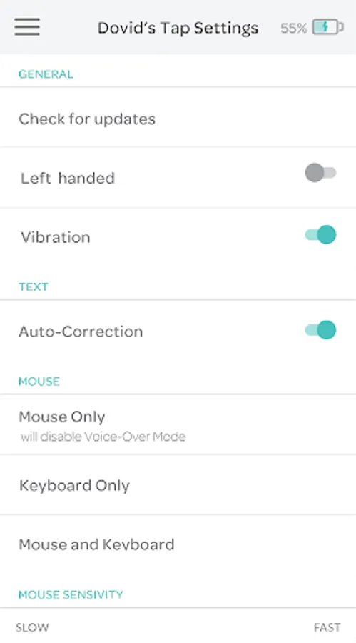 It allows you to update your TAP and customize settings such as right/left-handed use, mouse and scroll speed and language selection.