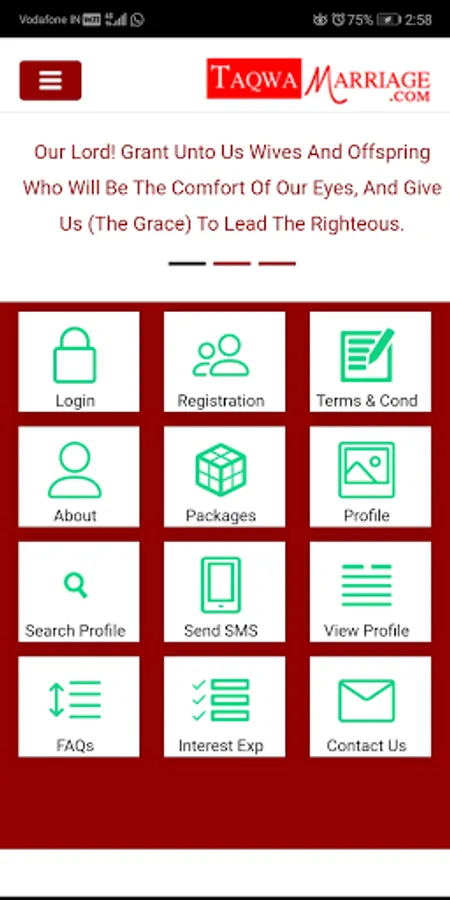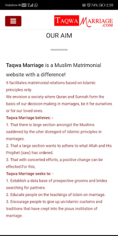 Taqwa Marriage is a Muslim Matrimonial website with a difference! It facilitates matrimonial relations based on Islamic principles only. We envision a society where Quran and Sunnah form the basis of our decision-making in marriages, be it for ourselves or for our loved ones.