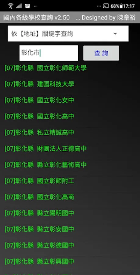 3.可以「依【校名】關鍵字查詢」、「依【地址】關鍵字查詢」、「依縣市、學校類別查詢」。