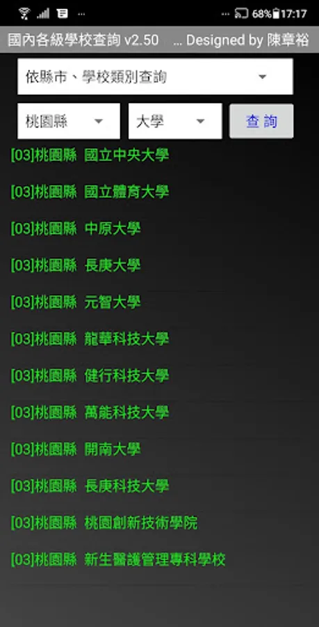 1.本系統使用的資料,係「政府資料開放平臺」於民國108年提供之各級學校名錄。