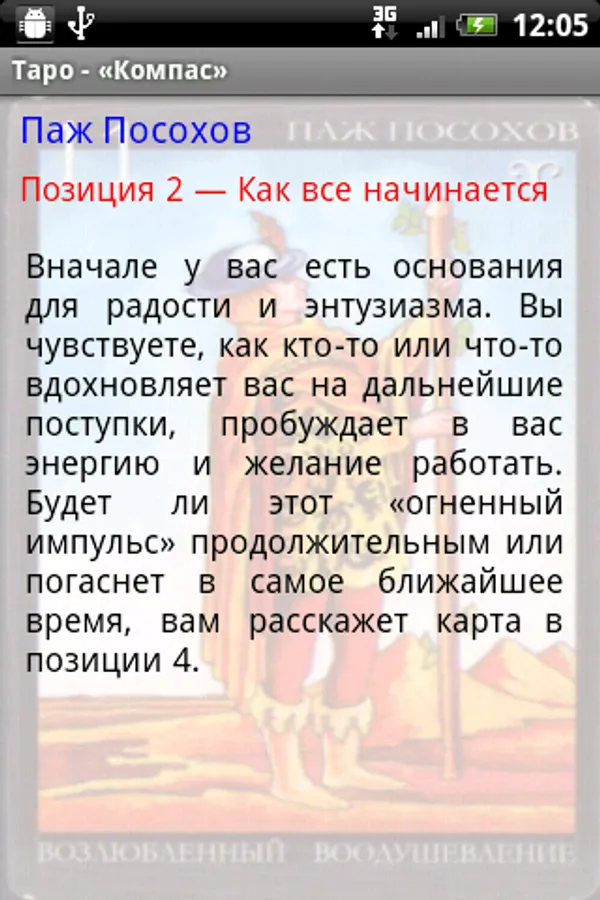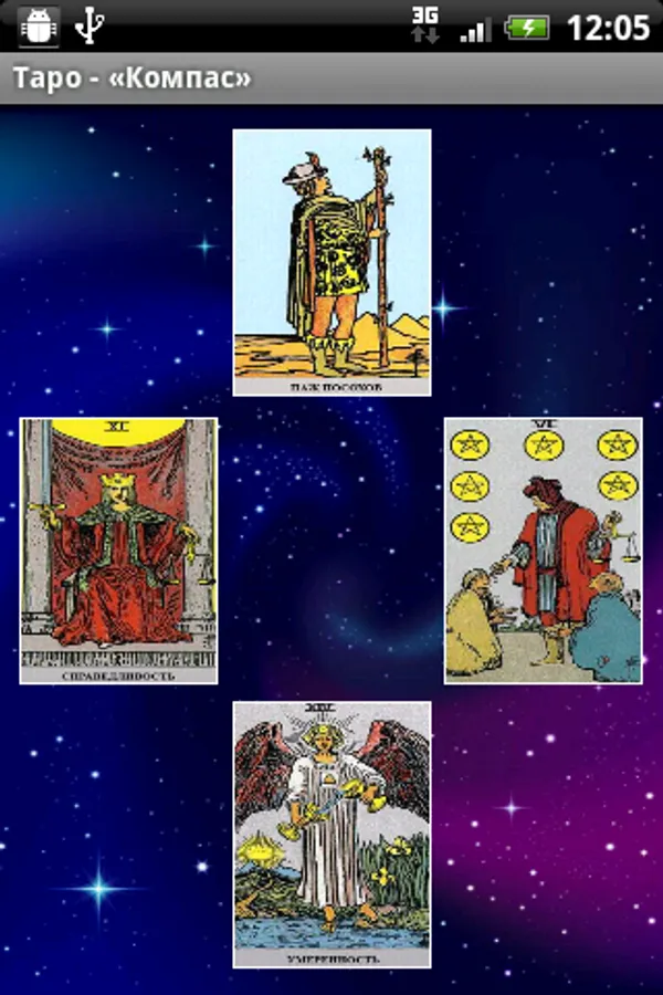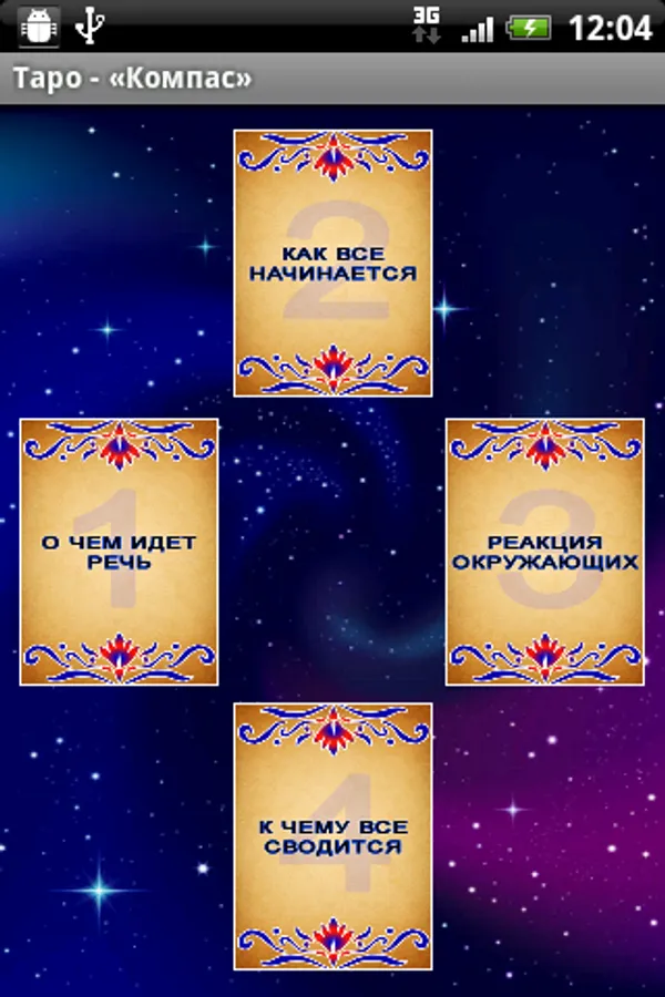 When you're ready to start guessing on the Tarot cards, click on the "Compass". Next Shuffle by shaking your phone or tablet. To view the interpretation of cards you need to click on the map.