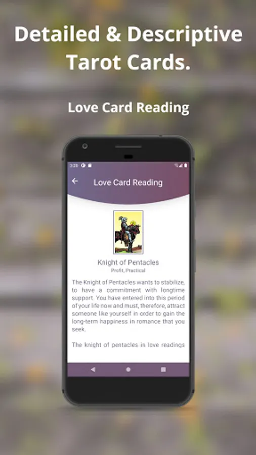 This Tarot card reading app or Psychic Reading is free available on Google play store. It is based on popular Rider Waite Tarot deck. This app incorporates with a lot of readings with detail description and very easy to use user interface.