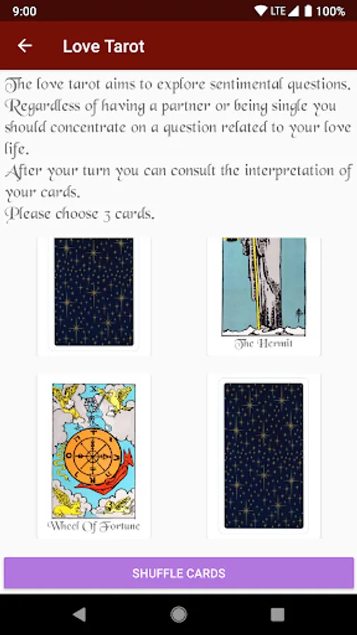 If you like fortune telling, you've found the best application, since we offer four different areas to consult: