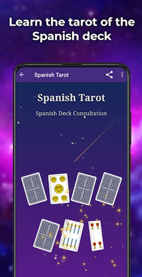 The free Spanish Deck Tarot lets you discover your present, past and future regarding different aspects such as love, health, money and work.