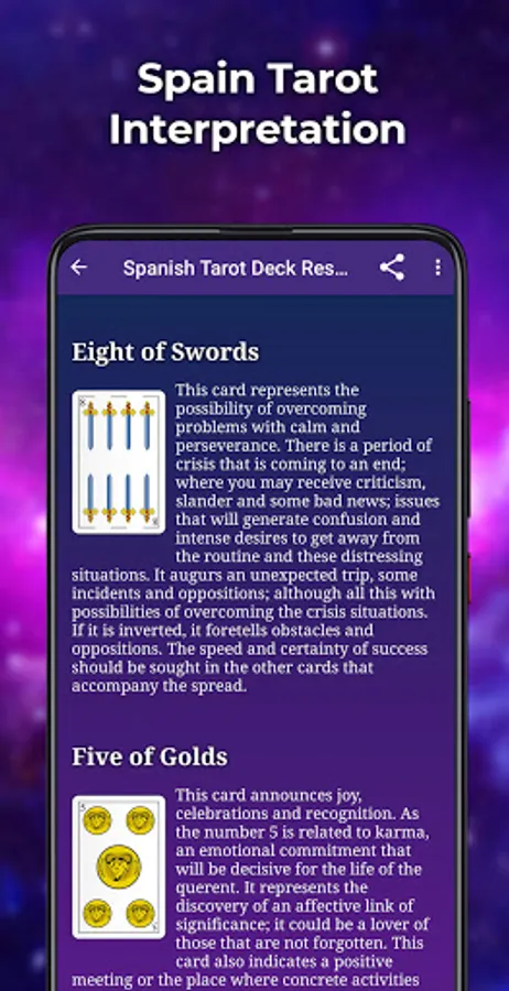 Daily Spanish Card Deck: Finally, the consultation of the daily card of the Spanish deck, allows you to select a card that will define your day in every way, but do not cheat with the prediction, do the consultation only once a day!