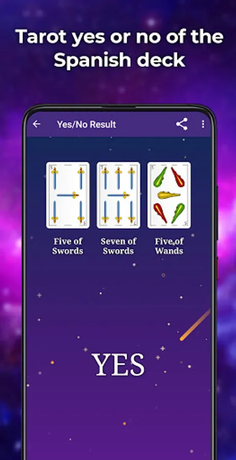 Tarot Yes or No Spanish Deck: The yes or no tarot consultation with the Spanish cards deck allows you, in a shorter way, to get clear answers to all your doubts. Depending on the combination of cards that appear, it will be a favorable or unfavorable connotation.