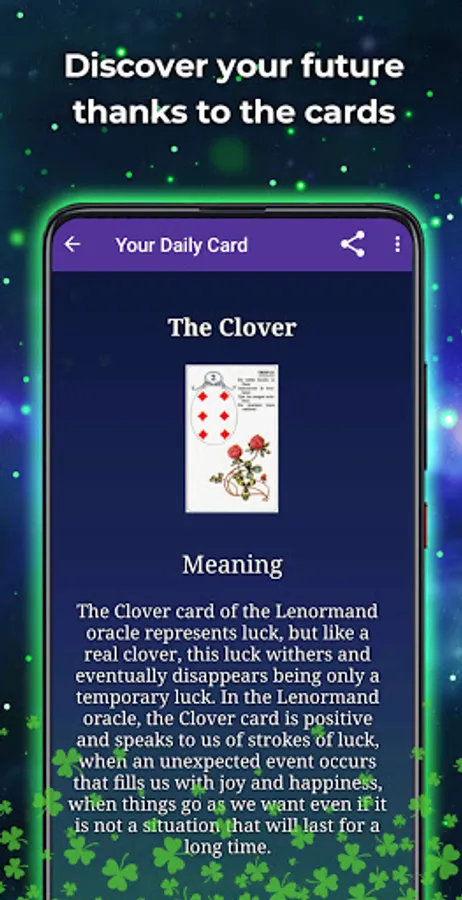 🃏 Daily Card: With the daily card of Marie Lenormand you will discover in a quick way what will be the course of your day. We recommend doing this spread in the morning.