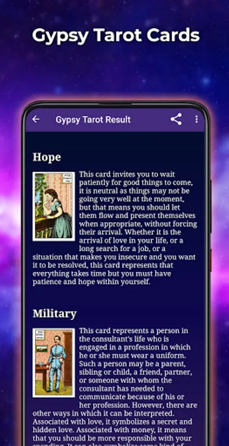 Our application offers different spreads for those people who are looking for different gypsy tarot consultations, expert tarot readers will put their efforts to solve all the doubts that worry you.