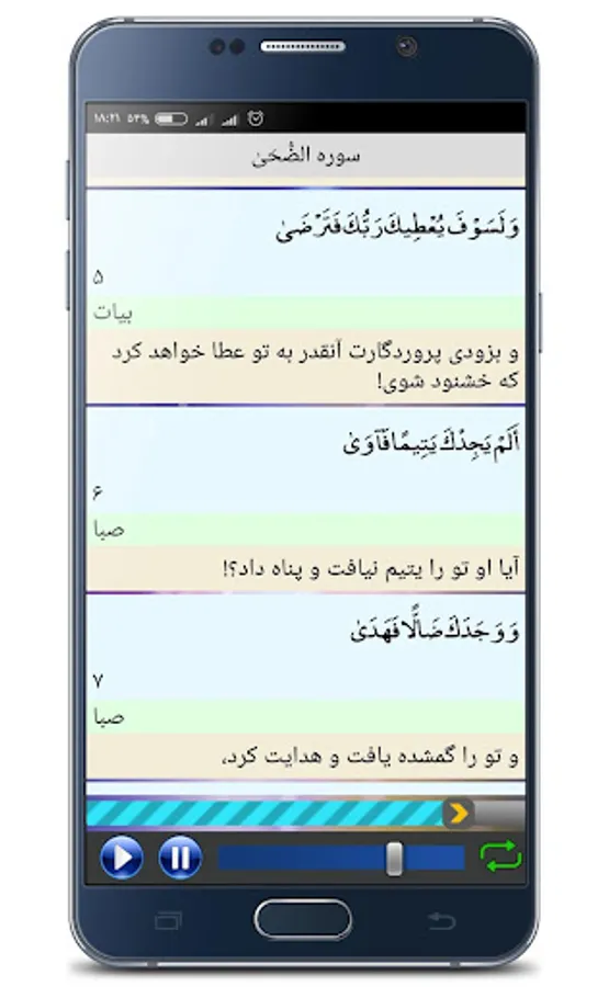 ✔ Ability to activate or deactivate the Persian translation at the same time as displaying the text of the Quran
