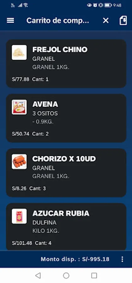 Aplicativo de registro de pedidos de víveres de los cocineros hacia las proveedurias en las distintas plantas de TASA