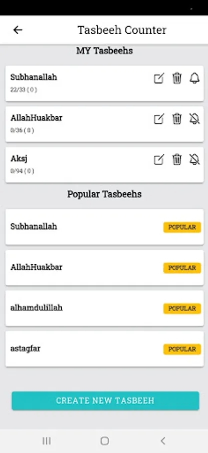 Tasbeehat is an add free islamic app which provides you the service of Namaz Timings with customized alarm, Islamic Calendar, Recite Tasbeeh with adding customized counter and much more.