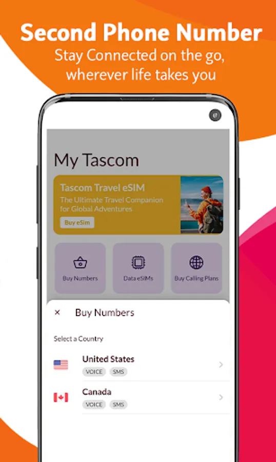 Tascom is your go-to app for all your communication needs. Whether you need 2nd line, data eSIM for travel, or affordable international calling, Tascom has it all. With our virtual numbers available from the USA and Canada and data eSIM in over 150 countries, you can stay connected globally with ease.