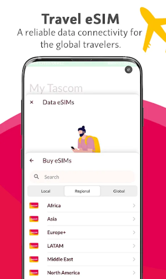 Traveling abroad? No worries! Tascom provides virtual sim for over 150 countries, allowing you to stay connected without needing a physical sim card. With Tascom's virtual eSIM, you can enjoy fast and reliable data connectivity on your device, so you can make calls, send texts, and use data just like a local, no matter where you are in the world.