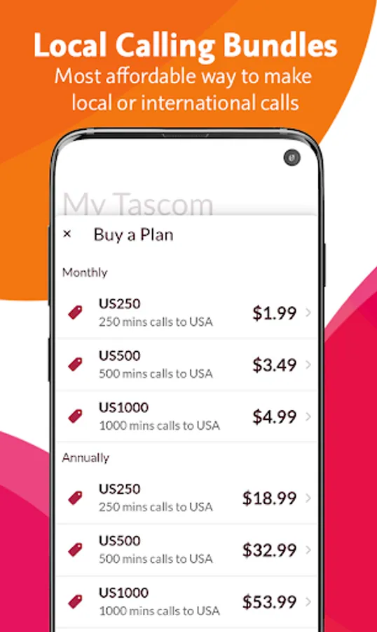 When you purchase 2nd line with Tascom, you also have the option to buy local call and text bundles for added convenience. This allows you to make local calls and send texts within the country of your virtual 2nd number, making it easy to communicate with locals and businesses without incurring additional charges.
